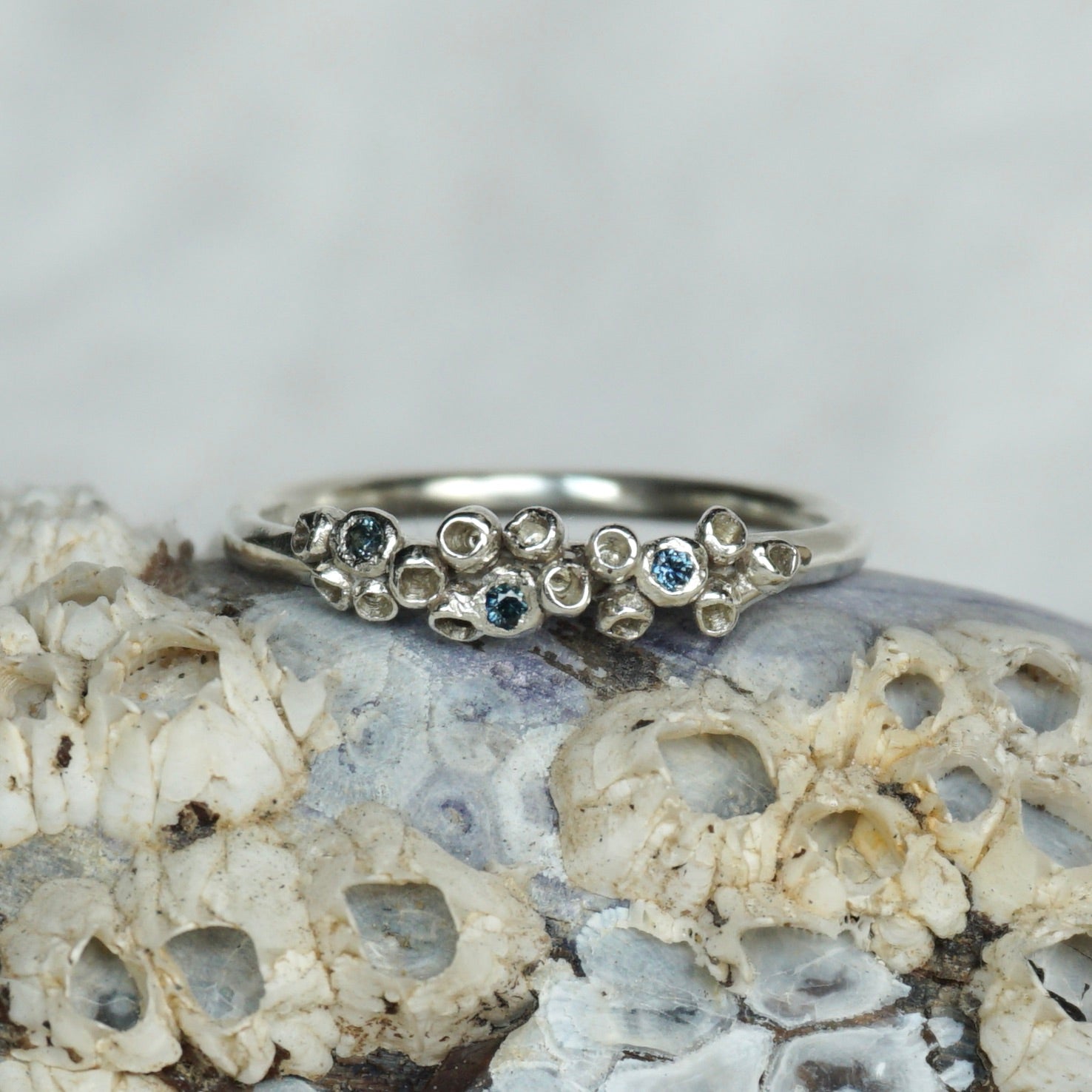 From Barnacle encrusted, sea-inspired rings to Lichen adjourned Earrings and rocky, geode wedding bands.
