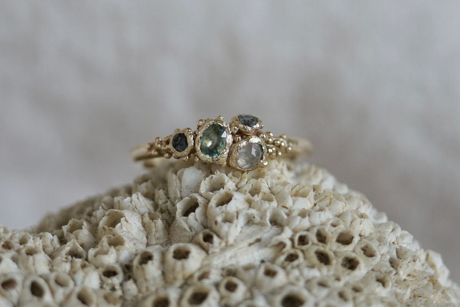Precious gemstone rings adorned with barnacles, lichens and beautiful organic textures. Ethically...